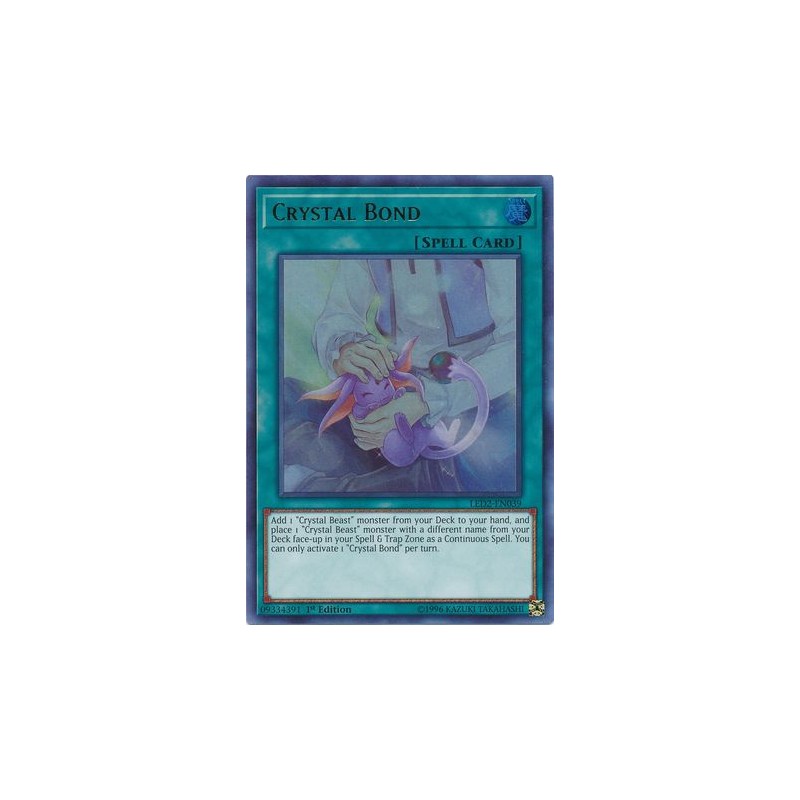 Texto (EN): Add 1 "Crystal Beast" monster from your Deck to your hand, and place 1 "Crystal Beast" monster with a different name from your Deck face-up in your Spell & Trap Zone as a Continuous Spell. You can only activate 1 "Crystal Bond" per turn.