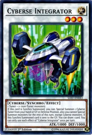 Texto (EN): 1 Tuner + 1+ non-Tuner monsters If this card is Synchro Summoned, you can: Special Summon 1 Cyberse Tuner from your hand or GY in Defense Position, also you cannot Special Summon monsters for the rest of this turn, except Cyberse monsters. If this Synchro Summoned card is sent to the GY: You can draw 1 card. You can only use each effect effect of "Cyberse Integrator" once per turn.
