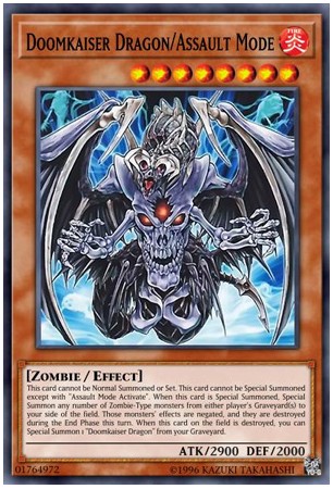 Texto (EN): This card cannot be Normal Summoned or Set. This card cannot be Special Summoned except with "Assault Mode Activate". When this card is Special Summoned, Special Summon any number of Zombie-Type monsters from either player's Graveyard(s) to your side of the field. Those monsters' effects are negated, and they are destroyed during the End Phase this turn. When this card on the field is destroyed, you can Special Summon 1 "Doomkaiser Dragon" from your Graveyard.