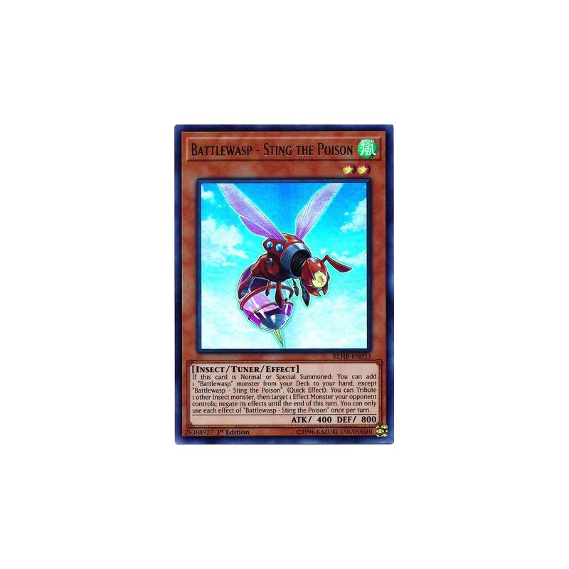 Texto (EN): If this card is Normal or Special Summoned: You can add 1 "Battlewasp" monster from your Deck to your hand, except "Battlewasp - Sting the Poison". (Quick Effect): You can Tribute 1 other Insect monster, then target 1 Effect Monster your opponent controls; negate its effects until the end of this turn. You can only use each effect of "Battlewasp - Sting the Poison" once per turn.