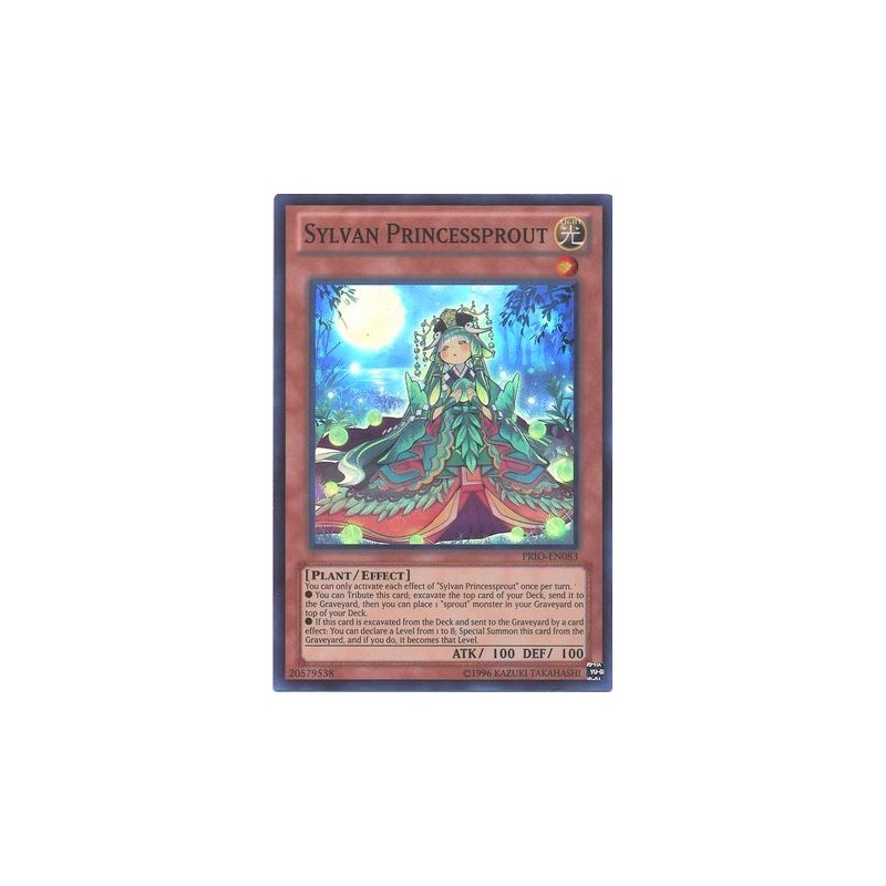Texto (EN): You can only activate each effect of "Sylvan Princessprout" once per turn. ● You can Tribute this card; excavate the top card of your Deck, send it to the Graveyard, then you can place 1 "sprout" monster in your Graveyard on top of your Deck. ● If this card is excavated from the Deck and sent to the Graveyard by a card effect: You can declare a Level from 1 to 8; Special Summon this card from the Graveyard, and if you do, it becomes that Level.