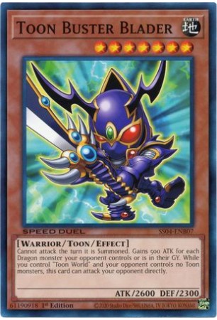 Texto (EN): Cannot attack the turn it is Summoned. Gains 500 ATK for each Dragon monster your opponent controls or is in their GY. While you control "Toon World" and your opponent controls no Toon monsters, this card can attack your opponent directly.