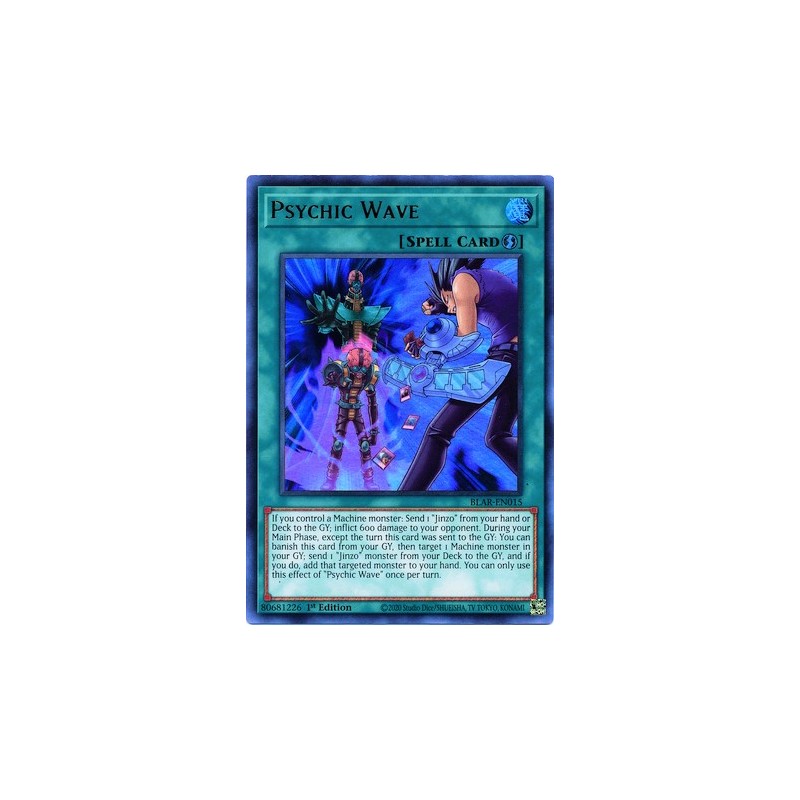 Texto (EN): If you control a Machine monster: Send 1 "Jinzo" from your hand or Deck to the GY; inflict 600 damage to your opponent. During your Main Phase, except the turn this card was sent to the GY: You can banish this card from your GY, then target 1 Machine monster in your GY; send 1 "Jinzo" monster from your Deck to the GY, and if you do, add that targeted monster to your hand. You can only use this effect of "Psychic Wave" once per turn.