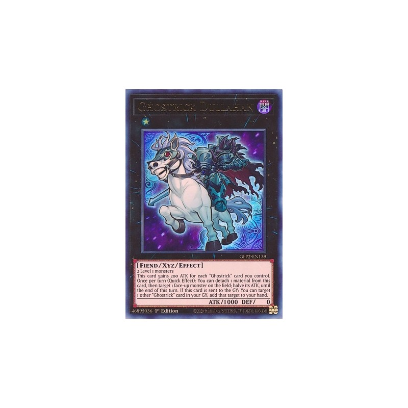 Texto (EN): 2 Level 1 monsters This card gains 200 ATK for each "Ghostrick" card you control. Once per turn, during either player's turn: You can detach 1 Xyz Material from this card, then target 1 face-up monster on the field; halve its ATK, until the end of this turn. If this card is sent to the Graveyard: You can target 1 other "Ghostrick" card in your Graveyard; add that target to your hand.