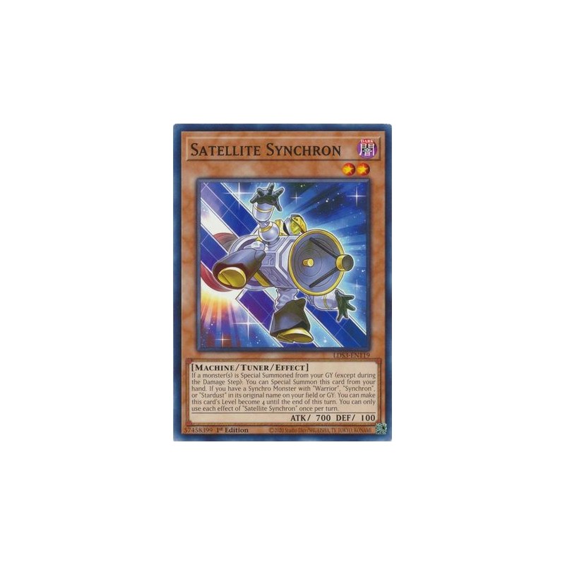 Texto (EN): If a monster(s) is Special Summoned from your GY (except during the Damage Step): You can Special Summon this card from your hand. If you have a Synchro Monster with "Warrior", "Synchron", or "Stardust" in its original name on your field or GY: You can make this card's Level become 4 until the end of this turn. You can only use each effect of "Satellite Synchron" once per turn.