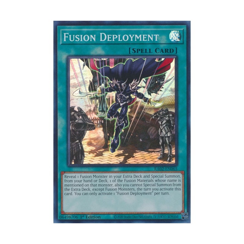 Texto (EN): Reveal 1 Fusion Monster in your Extra Deck and Special Summon, from your hand or Deck, 1 of the Fusion Materials whose name is specifically listed on that card, also you cannot Special Summon monsters from the Extra Deck, except Fusion Monsters, the turn you activate this card. You can only activate 1 "Fusion Deployment" per turn.