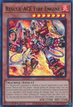 Texto (EN): If a "Rescue-ACE" monster(s) is Normal or Special Summoned to your field, except "Rescue-ACE Fire Engine" (except during the Damage Step): You can Special Summon this card from your hand. If a monster(s) is Special Summoned to your opponent's field (except during the Damage Step): You can Special Summon 1 Level 4 or lower "Rescue-ACE" monster from your hand, Deck, or GY. You can only use each effect of "Rescue-ACE Fire Engine" once per turn.
