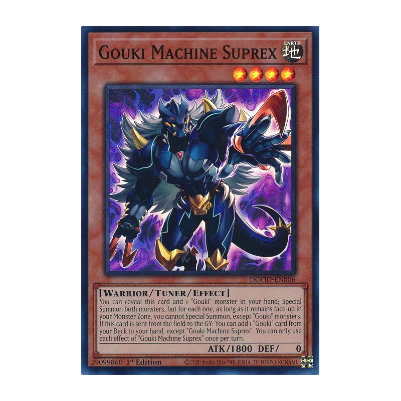 Texto (EN): You can reveal this card and 1 "Gouki" monster in your hand; Special Summon both monsters, but for each one, as long as it remains face-up in your Monster Zone, you cannot Special Summon, except "Gouki" monsters. If this card is sent from the field to the GY: You can add 1 "Gouki" card from your Deck to your hand, except "Gouki Machine Suprex". You can only use each effect of "Gouki Machine Suprex" once per turn.