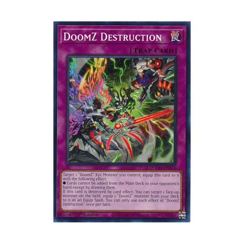 Texto (EN): Target 1 "DoomZ" Xyz Monster you control; equip this card to it with the following effect. ● Cards cannot be added from the Main Deck to your opponent's hand except by drawing them. If this card is destroyed by card effect: You can target 1 face-up monster on the field; equip 1 "DoomZ" monster from your Deck to it as an Equip Spell. You can only use each effect of "DoomZ Destruction" once per turn.