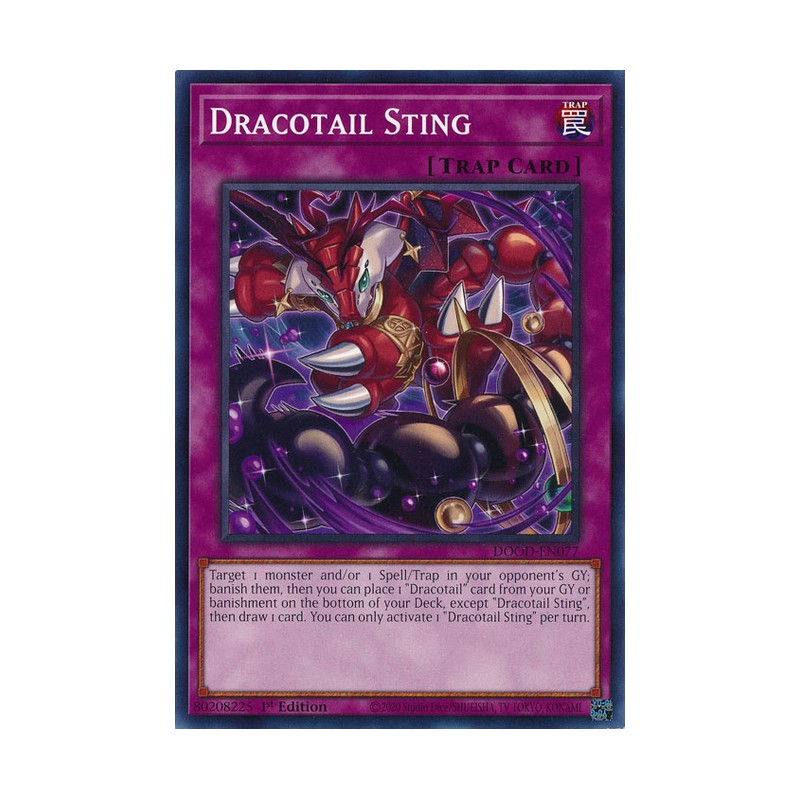 Texto (EN): Target 1 monster and/or 1 Spell/Trap in your opponent's GY; banish them, then you can place 1 "Dracotail" card from your GY or banishment on the bottom of your Deck, except "Dracotail Sting", then draw 1 card. You can only activate 1 "Dracotail Sting" per turn.