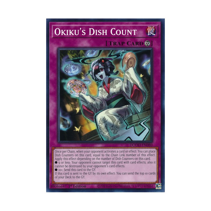 Texto (EN): Once per Chain, when your opponent activates a card or effect: You can place Dish Counters on this card, equal to the Chain Link number of this effect. Apply this effect depending on the number of Dish Counters on this card. ● 9 or less: Your opponent cannot target this card with card effects, also it cannot be destroyed by your opponent's card effects. ● 10+: Send this card to the GY. If this card is sent to the GY by its own effect: You can send the top 10 cards of your Deck to the GY.