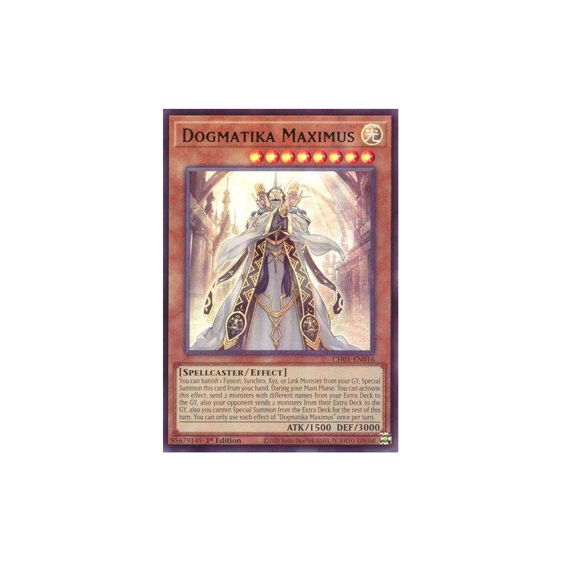 Texto (EN): You can banish 1 Fusion, Synchro, Xyz, or Link Monster from your GY; Special Summon this card from your hand. During your Main Phase: You can activate this effect; send 2 monsters with different names from your Extra Deck to the GY, also your opponent sends 2 monsters from their Extra Deck to the GY, also you cannot Special Summon from the Extra Deck for the rest of this turn. You can only use each effect of "Dogmatika Maximus" once per turn.