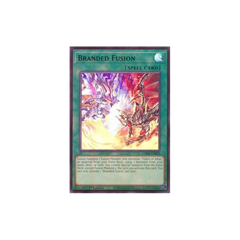 Texto (EN): Fusion Summon 1 Fusion Monster that mentions "Fallen of Albaz" as material from your Extra Deck, using 2 monsters from your hand, Deck, or field as material. You cannot Special Summon from the Extra Deck, except Fusion Monsters, the turn you activate this card. You can only activate 1 "Branded Fusion" per turn.