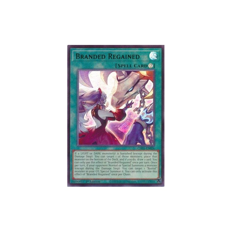 Texto (EN): If a LIGHT or DARK monster(s) is banished (except during the Damage Step): You can target 1 of those monsters; place that monster on the bottom of the Deck, and if you do, draw 1 card. You can only use this effect of "Branded Regained" once per turn. Once per turn, if your opponent Normal or Special Summons a monster (except during the Damage Step): You can target 1 "Bystial" monster in your GY; Special Summon it. You can only activate this effect of "Branded Regained" once per Chain.
