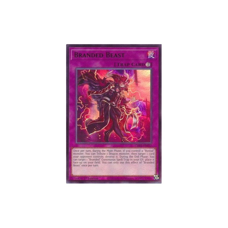 Texto (EN): Once per turn, during the Main Phase, if you control a "Bystial" monster: You can Tribute 1 Dragon monster, then target 1 card your opponent controls; destroy it. During the End Phase: You can target 1 "Branded" Continuous Spell/Trap in your GY; place it face-up on your field. You can only use this effect of "Branded Beast" once per turn.