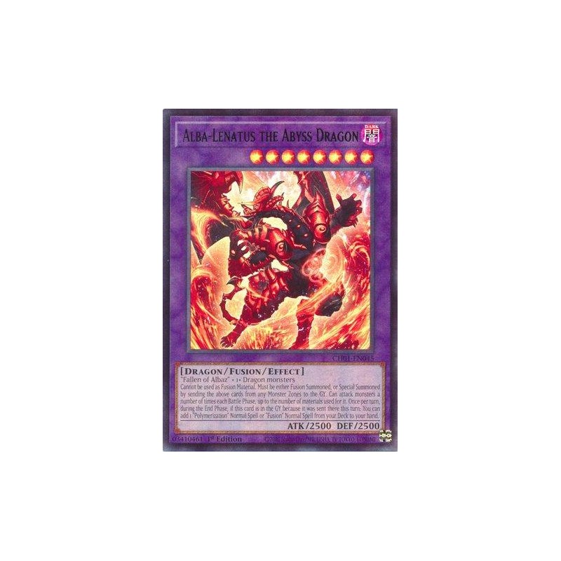 Texto (EN): 1 "Fallen of Albaz" + 1+ Dragon monsters Cannot be used as Fusion Material. Must be either Fusion Summoned, or Special Summoned by sending the above cards from any Monster Zones to the GY. This card can attack monsters a number of times each Battle Phase, up to the number of materials used for it. Once per turn, during the End Phase, if this card is in the GY because it was sent there this turn: You can add 1 "Polymerization" Normal Spell or "Fusion" Normal Spell from your Deck to your hand.