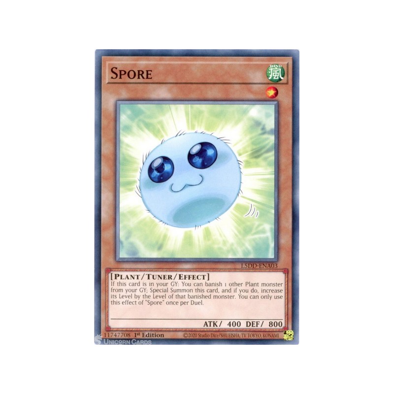 Texto (EN): If this card is in your Graveyard: You can banish 1 other Plant-Type monster from your Graveyard; Special Summon this card from your Graveyard and increase its Level by the Level of that banished monster. Each player can only activate the effect of "Spore" once per Duel.