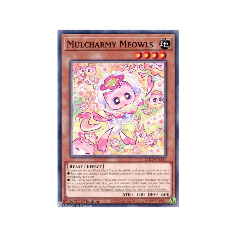 Texto (EN): If you control no cards (Quick Effect): You can discard this card; apply these effects this turn. ●Each time your opponent Special Summons a monster(s) from any GY(s) or banishment, immediately draw 1 card. ●Once, during this End Phase, if the number of cards in your hand is more than the number of cards your opponent controls +6, you must randomly shuffle cards from your hand into the Deck so the number in your hand equals the number your opponent controls +6. You can only activate 1 other "Mulcharmy" monster effect, the turn you activate this effect.