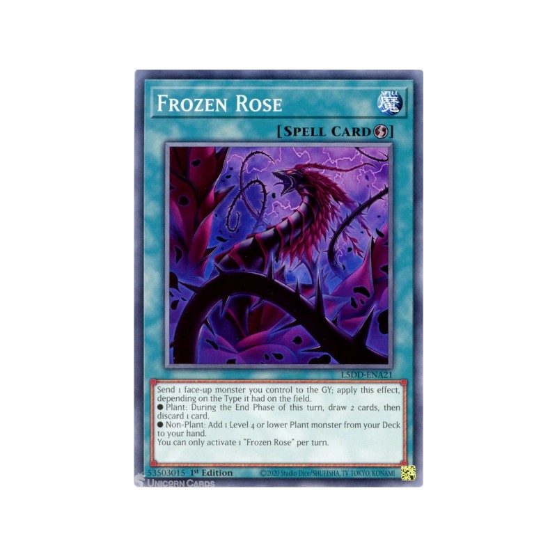 Texto (EN): Send 1 face-up monster you control to the GY; apply this effect, depending on the Type it had on the field. ●Plant: During the End Phase of this turn, draw 2 cards, then discard 1 card. ●Non-Plant: Add 1 Level 4 or lower Plant monster from your Deck to your hand. You can only activate 1 "Frozen Rose" per turn.