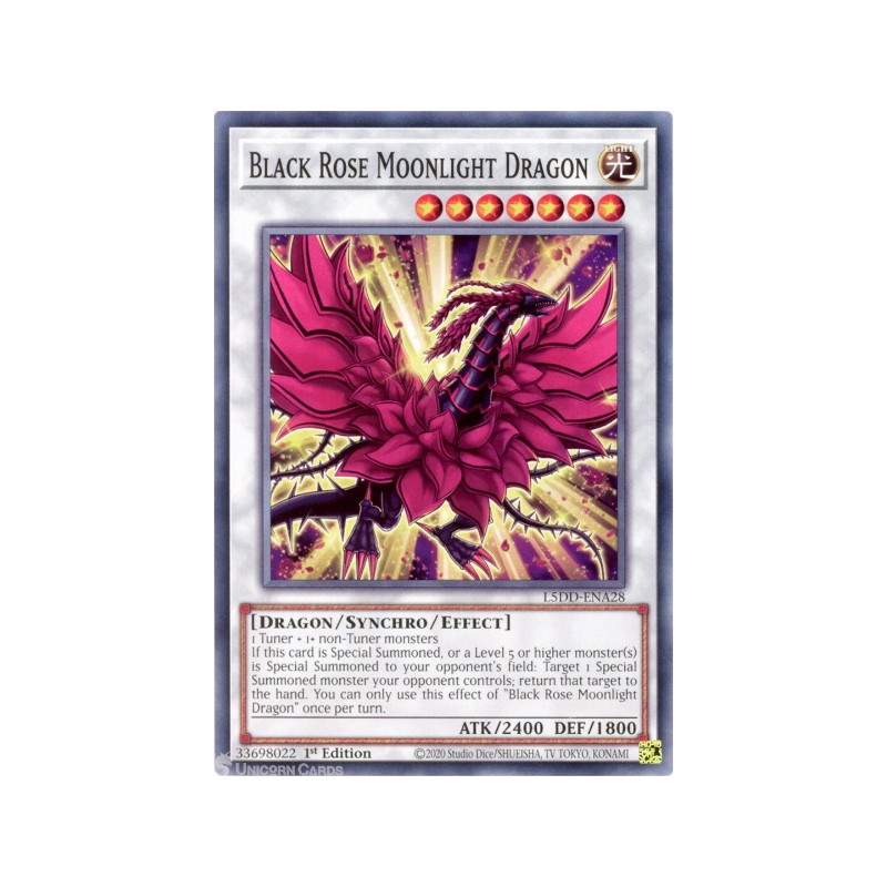 Texto (EN): 1 Tuner + 1 or more non-Tuner monsters If this card is Special Summoned, or a Level 5 or higher monster(s) is Special Summoned to your opponent's side of the field: Target 1 Special Summoned monster your opponent controls; return that target to the hand. You can only use this effect of "Black Rose Moonlight Dragon" once per turn.