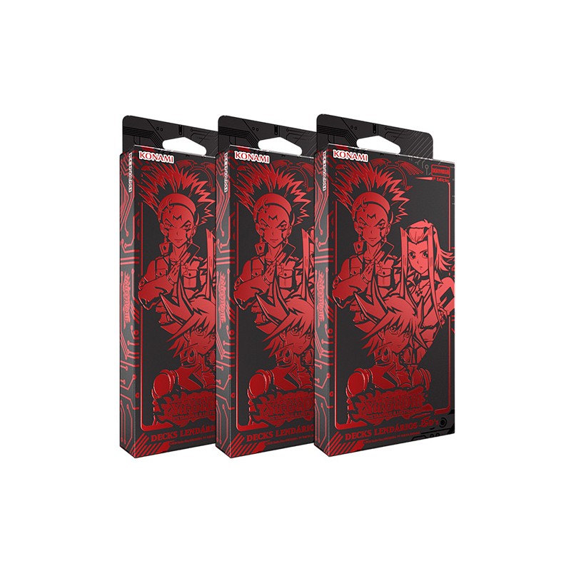 Kit com 3 unidades de  Decks Lendários 5D's , que contém 3 decks completos prontos para jogar, cada um com 50 estampas.