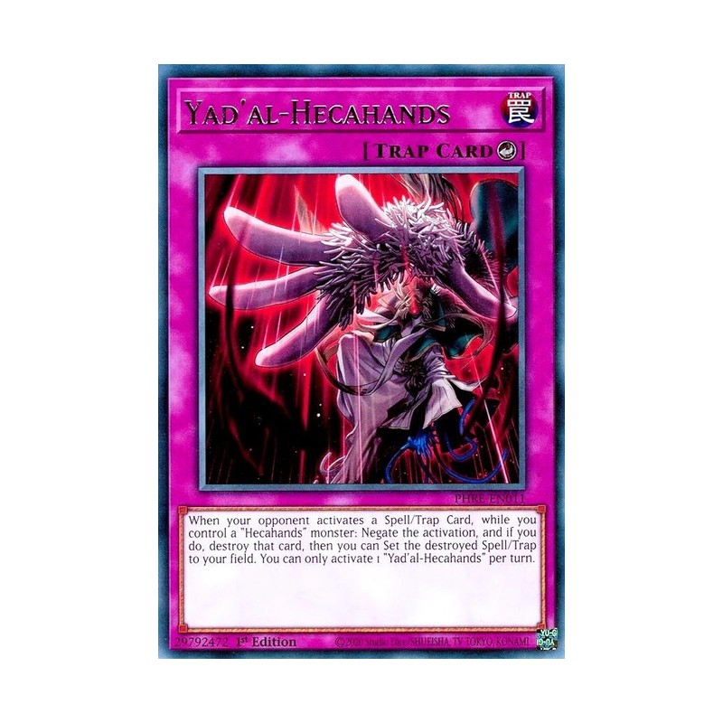 Texto (EN): When your opponent activates a Spell/Trap Card, while you control a "Hecahands" monster: Negate the activation, and if you do, destroy that card, then you can Set the destroyed Spell/Trap to your field. You can only activate 1 "Yad'al-Hecahands" per turn.