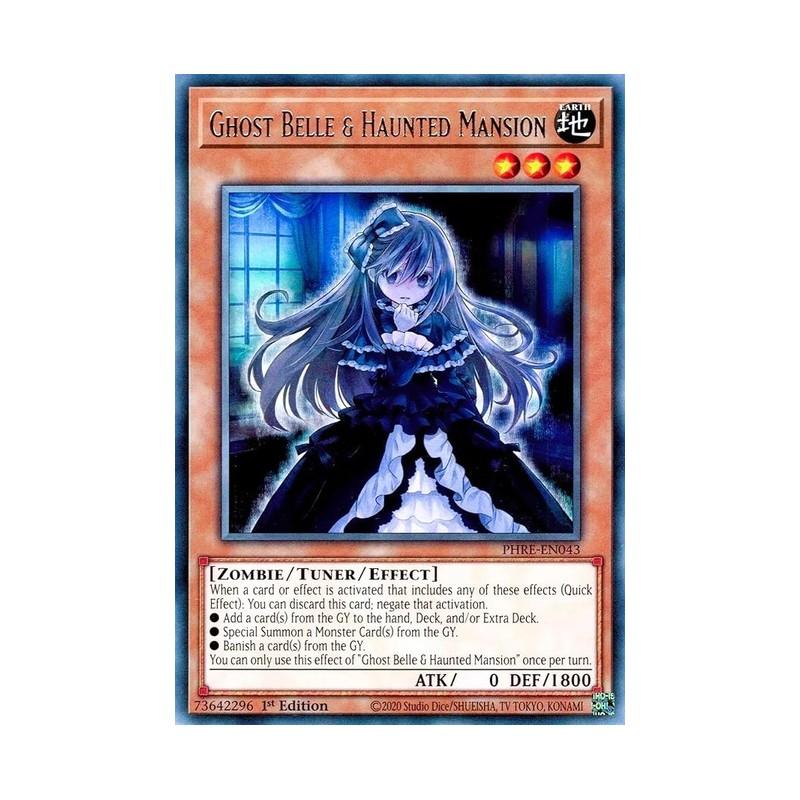 Texto (EN): When a card or effect is activated that includes any of these effects (Quick Effect): You can discard this card; negate that activation. ● Add a card(s) from the GY to the hand, Deck, and/or Extra Deck. ● Special Summon a Monster Card(s) from the GY. ● Banish a card(s) from the GY. You can only use this effect of "Ghost Belle & Haunted Mansion" once per turn.
