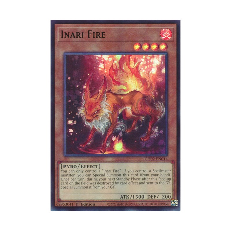 Texto (EN): You can only control 1 "Inari Fire". If you control a Spellcaster monster, you can Special Summon this card (from your hand). Once per turn, during your next Standby Phase after this face-up card on the field was destroyed by card effect and sent to the GY: Special Summon it from your GY.