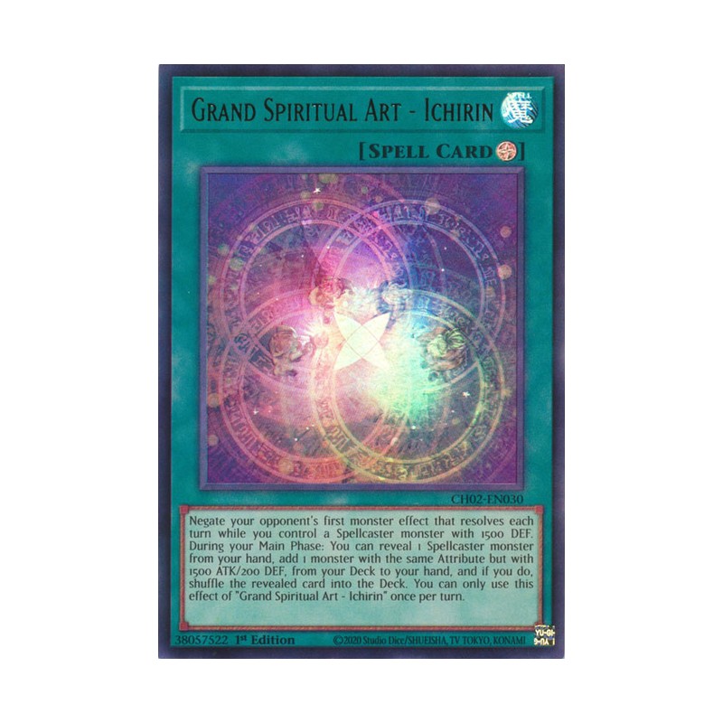 Texto (EN): Negate your opponent's first monster effect that resolves each turn while you control a Spellcaster monster with 1500 DEF. During your Main Phase: You can reveal 1 Spellcaster monster from your hand, add 1 monster with the same Attribute but with 1500 ATK/200 DEF, from your Deck to your hand, and if you do, shuffle the revealed card into the Deck. You can only use this effect of "Grand Spiritual Art - Ichirin" once per turn.