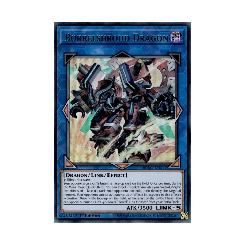Texto (EN): 3+ Effect Monsters Your opponent cannot Tribute this face-up card on the field. Once per turn, during the Main Phase (Quick Effect): You can target 1 "Rokket" monster you control; negate the effects of 1 face-up card your opponent controls, then destroy the targeted monster. Your opponent cannot activate cards or effects in response to this effect's activation. Once while face-up on the field, at the start of the Battle Phase: You can Special Summon 1 Link-4 or lower "Borrel" Link Monster from your Extra Deck.