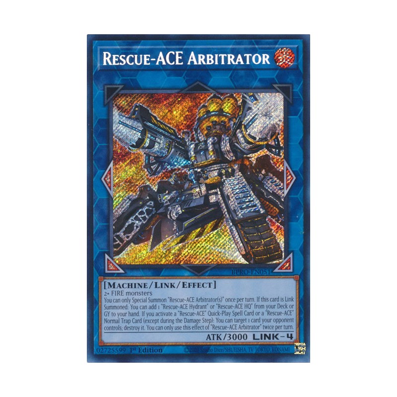 Texto (EN): 2+ FIRE monsters You can only Special Summon "Rescue-ACE Arbitrator(s)" once per turn. If this card is Link Summoned: You can add 1 "Rescue-ACE Hydrant" or "Rescue-ACE HQ" from your Deck or GY to your hand. If you activate a "Rescue-ACE" Quick-Play Spell Card or a "Rescue-ACE" Normal Trap Card (except during the Damage Step): You can target 1 card your opponent controls; destroy it. You can only use this effect of "Rescue-ACE Arbitrator" twice per turn.