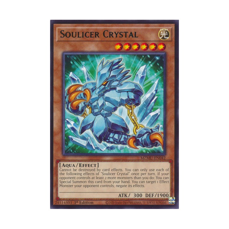 Texto (EN): Cannot be destroyed by card effects. You can only use each of the following effects of "Soulicer Crystal" once per turn. If your opponent controls at least 2 more monsters than you do: You can Special Summon this card from your hand. You can target 1 Effect Monster your opponent controls; negate its effects.