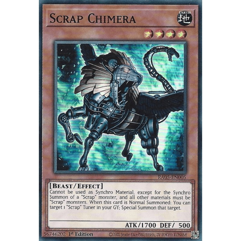 Texto (EN): Cannot be used as Synchro Material, except for the Synchro Summon of a "Scrap" monster, and all other materials must be "Scrap" monsters. When this card is Normal Summoned: You can target 1 "Scrap" Tuner in your GY; Special Summon that target.