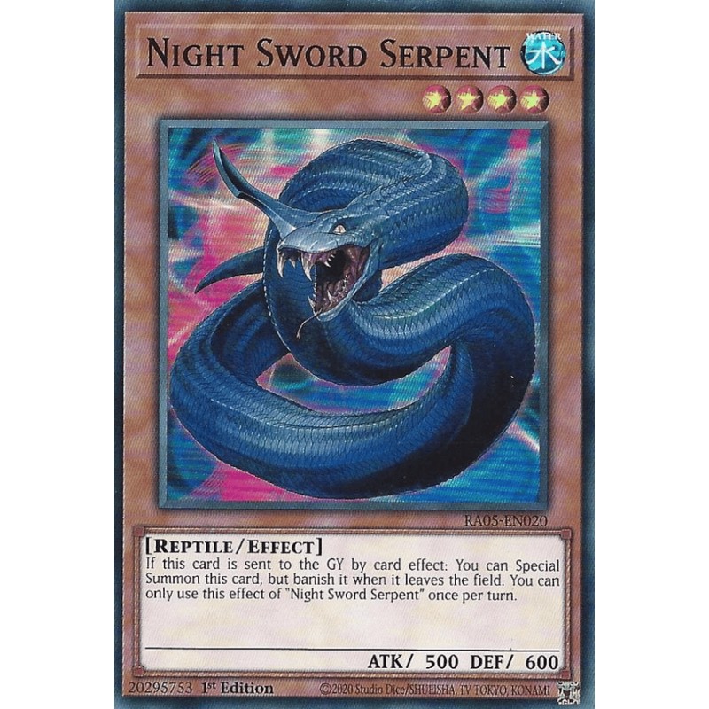 Texto (EN): If this card is sent to the GY by card effect: You can Special Summon this card, but banish it when it leaves the field. You can only use this effect of "Night Sword Serpent" once per turn.