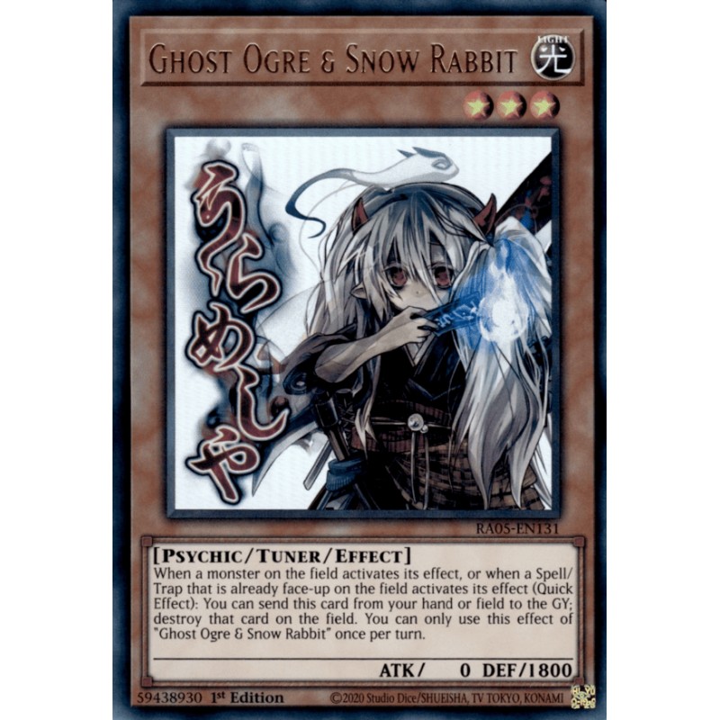 Texto (EN): When a monster on the field activates its effect, or when a Spell/Trap that is already face-up on the field activates its effect (Quick Effect): You can send this card from your hand or field to the GY; destroy that card on the field. You can only use this effect of "Ghost Ogre & Snow Rabbit" once per turn.
