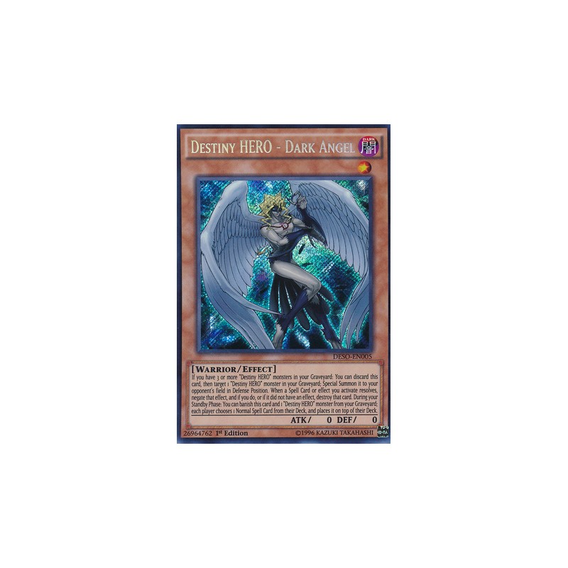 Texto (EN): If you have 3 or more "Destiny HERO" monsters in your Graveyard: You can discard this card, then target 1 "Destiny HERO" monster in your Graveyard; Special Summon it to your opponent's field in Defense Position. When a Spell Card or effect you activate resolves, negate that effect, and if you do, or if it did not have an effect, destroy that card. During your Standby Phase: You can banish this card and 1 "Destiny HERO" monster from your Graveyard; each player chooses 1 Normal Spell Card from their Deck, and places it on top of their Deck.