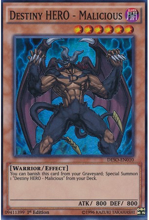 Texto (EN): You can banish this card from your Graveyard; Special Summon 1 "Destiny HERO - Malicious" from your Deck.