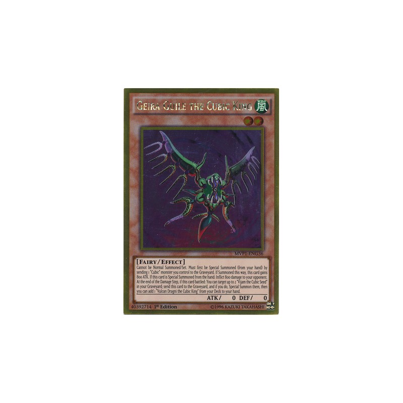 Texto (EN): Cannot be Normal Summoned/Set. Must first be Special Summoned (from your hand) by sending 1 "Cubic" monster you control to the Graveyard. If Summoned this way, this card gains 800 ATK. If this card is Special Summoned from the hand: Inflict 800 damage to your opponent. At the end of the Damage Step, if this card battled: You can target up to 2 "Vijam the Cubic Seed" in your Graveyard; send this card to the Graveyard, and if you do, Special Summon them, then you can add 1 "Vulcan Dragni the Cubic King" from your Deck to your hand.